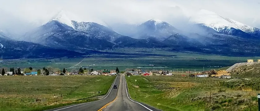 Scene above is of the Sangre de Cristo Mountains with the town of Westcliffe at their base. This is about 65 miles west and south of Pueblo West.